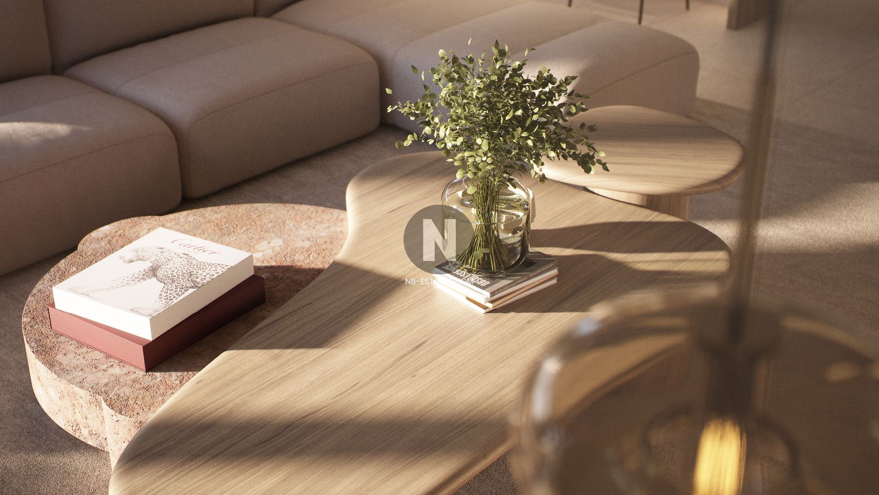 escultural y contemporánea, caracterizada por formas orgánicas,