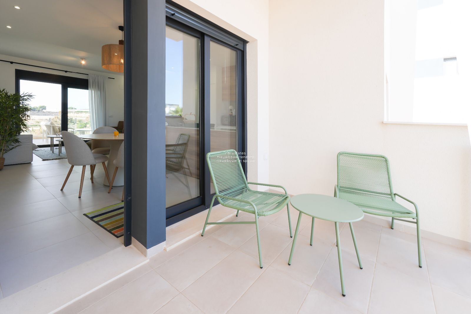 Dit recent opgeleverde appartement bevindt zich op de eerste verdieping van een kleinschalige residentie in de omgeving van Lo Romero Golf, nabij Pilar de la Horadada. Het betreft een resale woning die in januari 2025 werd opgeleverd en volledig bemeubeld wordt aangeboden.
