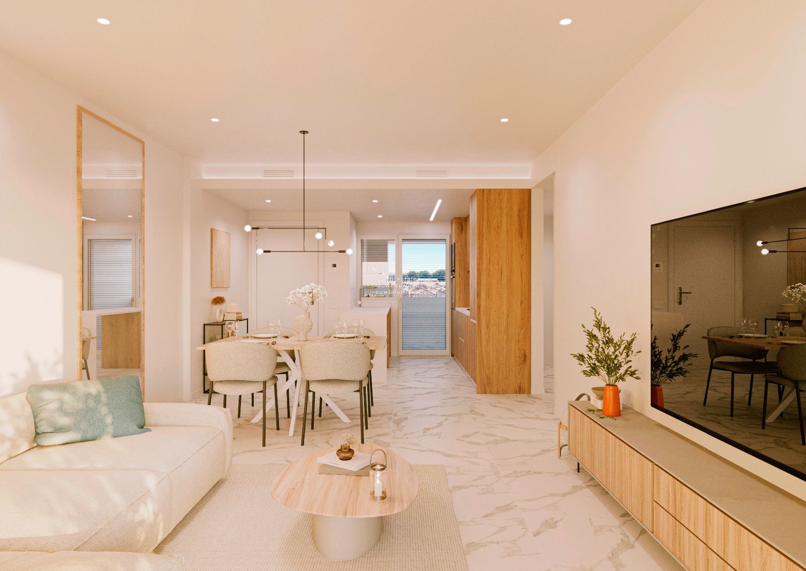 De appartementen zijn ontworpen met oog voor comfort en functionaliteit. Grote ramen zorgen voor veel natuurlijk licht en verbinden de binnenruimte met het ruime terras. De gemeenschappelijke zones omvatten een zwembad, groene tuinen en zitgedeeltes, ideaal om te ontspannen of te genieten van het mediterrane klimaat. Alles is gericht op een zorgeloze woonervaring in een rustige omgeving.