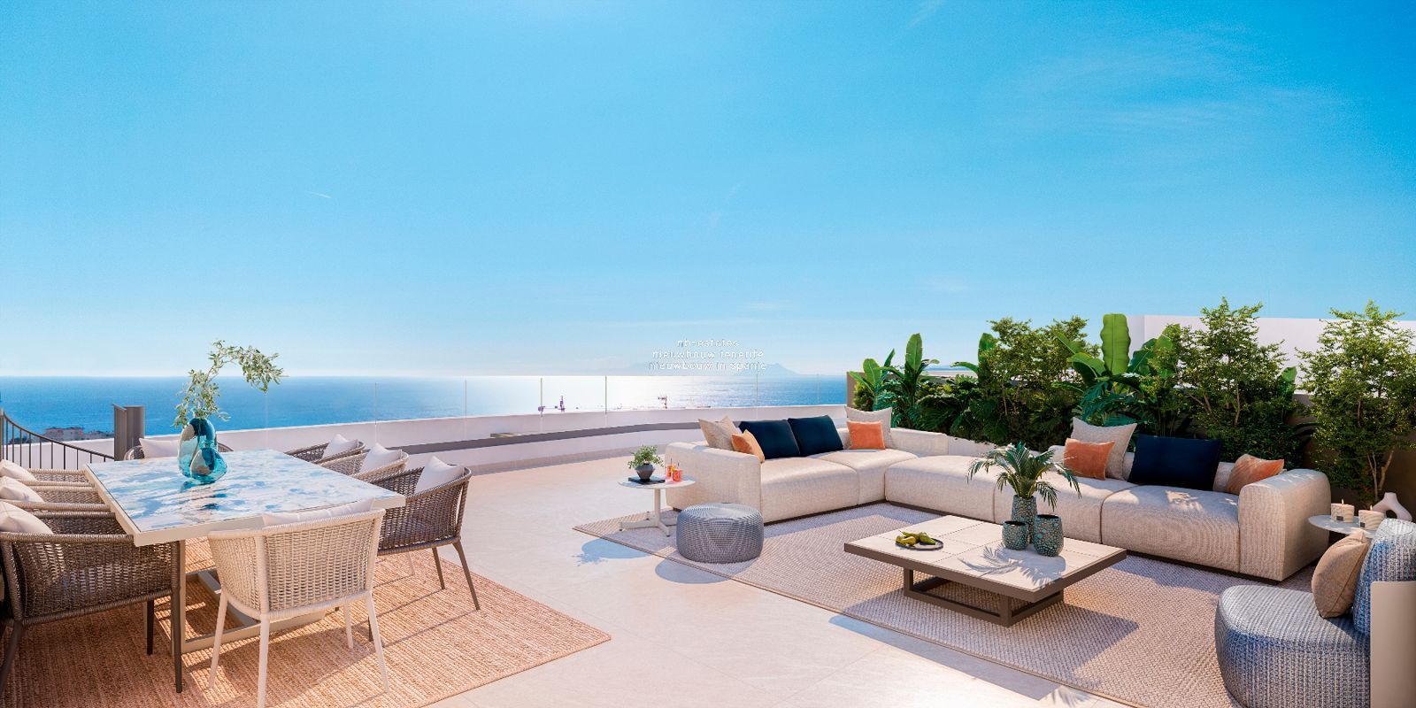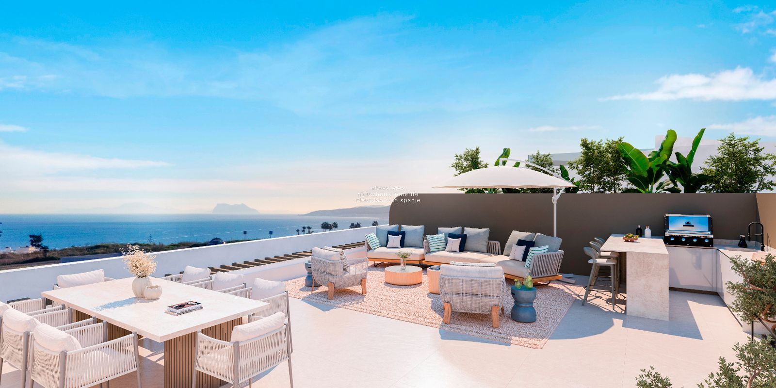 • Terrassen ontworpen als buitenleefruimte met uitzicht op zee en bergen
