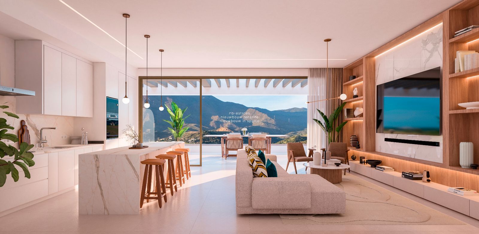In de wijk Las Mesas, één van de meest aantrekkelijke zones binnen Estepona-stad, vindt u een nieuwbouwproject dat moderne architectuur combineert met een uitzonderlijke ligging. De woningen variëren van 1 tot 3 slaapkamers, telkens ontworpen met open leefruimtes, veel natuurlijk licht en royale terrassen die uitkijken op zowel zee als bergen.